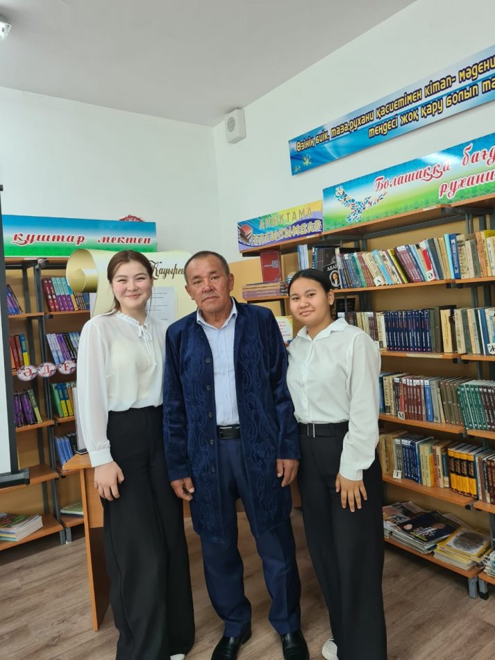Оқушылардың бойына халқымыздың қадір-қасиетін сіңіру,үлкенді сыйлай білуге, өз ата-бабасын ұмытпай есте сақтауға және аталы сөзден ғибрат алуға тәрбиелеу,салт дәстүріміз- ұлттық болмысымыз бен қалыптасқан төл мәдениетіміз екенін насихаттау мақсатында мектебімізде «Оқуға құштар мектеп жобасы» аясында және «Мектеп- оқушы- отбасы» деп аталатын үштік одақтың арасындағы үйлесімді атқарылып жатқан жұмыстардың нәтижесі ретінде «Жас қауырсын» жас ақындар клубының ұйымдастыруымен 2023 жылдың 5 мамыр күні ақын ағамыз әрі мектебіміздің белсенді ата-анасы Бөлен Манарбек Көпбосынұлымен бірге «Өлеңім-өмірімнің айнасы» атты сыр-сұхбат кеші өткізілді. Мәртебелі поэзия әлемінде қайсарлық пен ақиқаттың алдас¬панындай жарқыраған, махаббат пен адалдықты жүрегімен жырлаған ақын ағамыз өзінің өмірі мен шығармашылығы бойынша үзік сырларымен бөлісе отырып,оқушыларға талай тағылымды әңгіме айтып,тәрбиелік мәні бар ақыл-кеңестерін де беріп өтті.