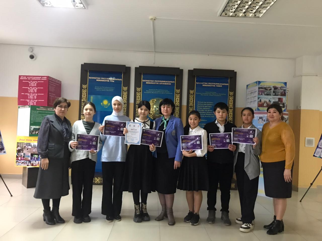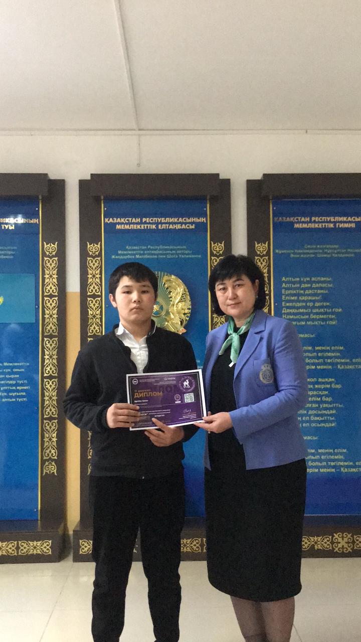 Осы байқауда жоғары көрсеткіш көрсетіп,1 дәрежелі дипломмен 8 сынып оқушылары: